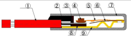 1. Lead 2.Epoxy Resin 3. Stationary Contact Plate 4. Movable Contact 5. Movable Spring Plate 6. Bimetallic Strip 7. Metal Case 8. Insulation Block 9. Baseplate 10. Insulating Tube |